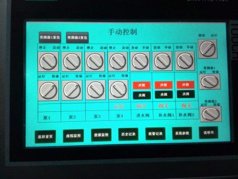 本地塊二次供水設(shè)備系統(tǒng)實現(xiàn)全自動控制,具有手動/自動切換、水泵定時輪換、壓力自動調(diào)節(jié)、恒壓、缺水保護、水泵自動睡眠、超壓停泵、智能爆管檢測 及自動遠程報警與停泵 、泵房漏水檢測及自動遠程報警與停泵等功能。配置高度智能化PLC及人機界面系統(tǒng),可視化遠程調(diào)整、監(jiān)測和維護。本二次供水變頻恒壓供水設(shè)備在該地塊共安裝兩套,D1\D2地塊各一套。